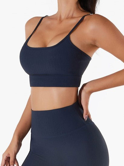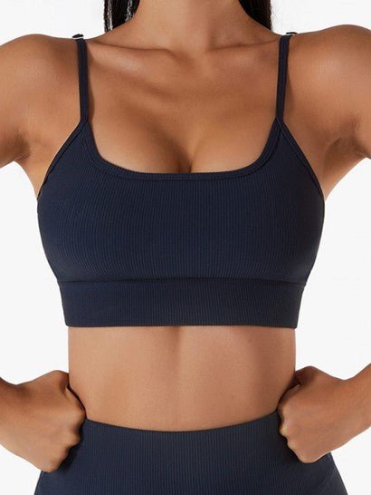 Solid Color Ribbed Chest Pad Yoga Sports Bra